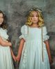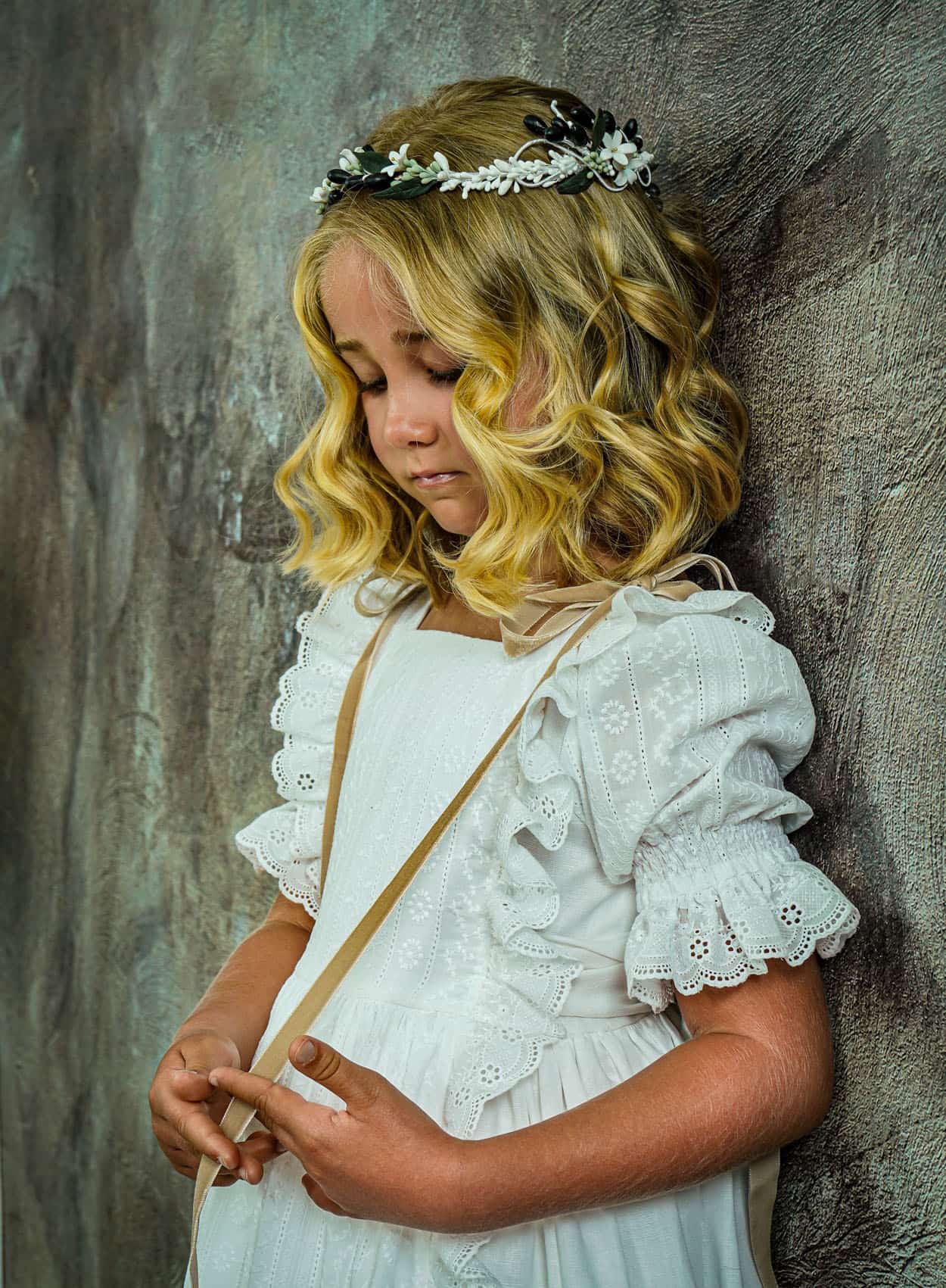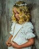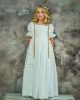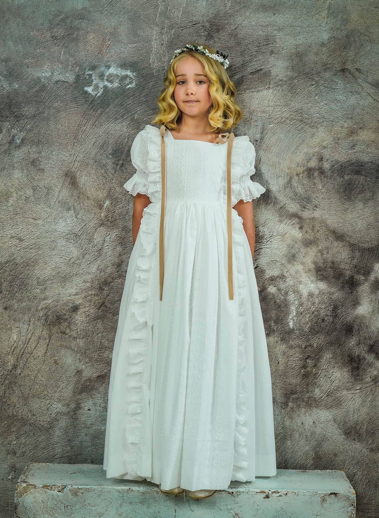 • Niña luce un vestido de primera comunión con bordados, una cadena y un fajín.05050505