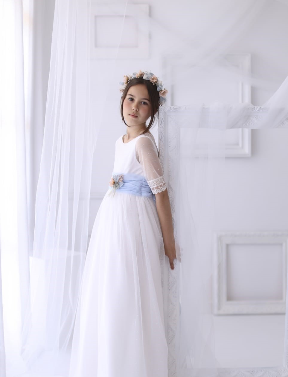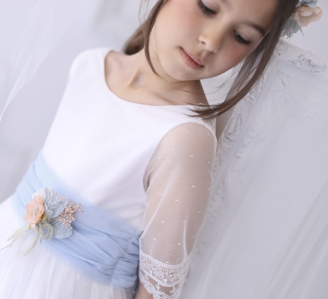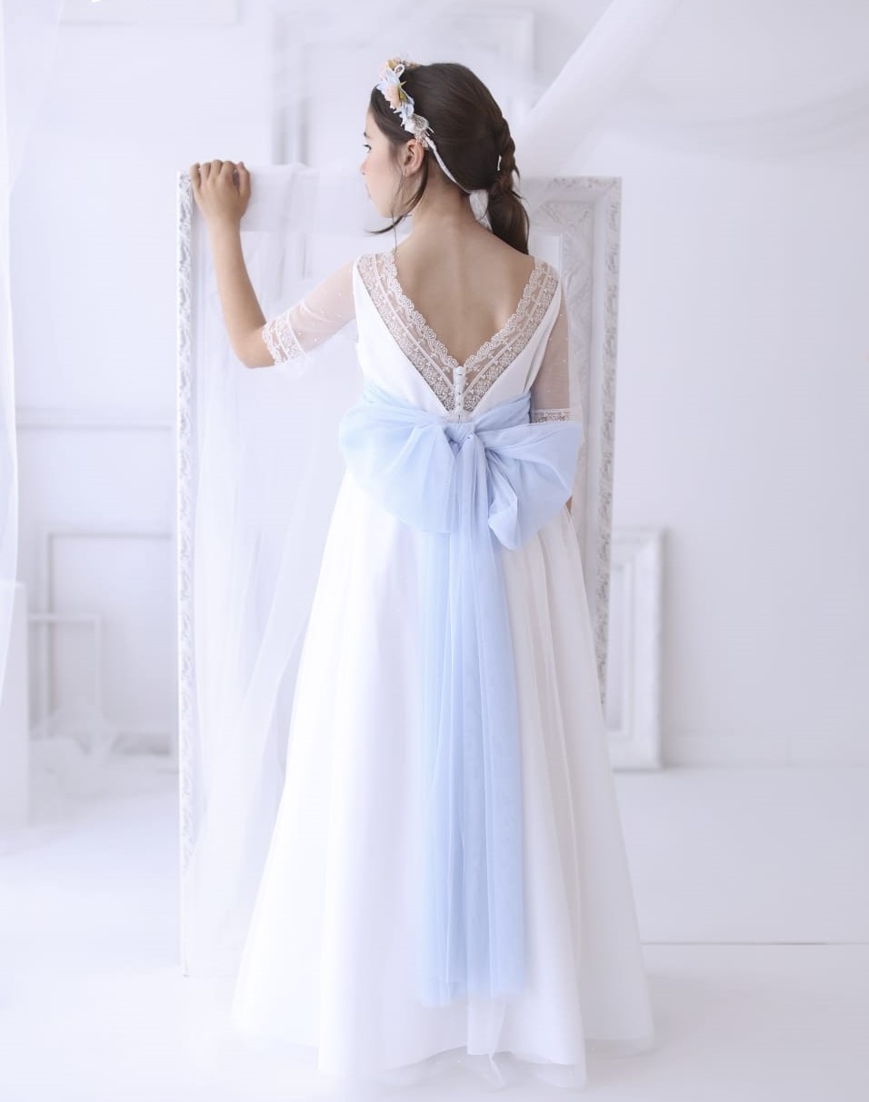 • Vestido de comunión con fajín azulado